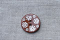 レッドブラウンに、お花柄をちりばめたかわいいシェルボタン。小物やバッグのポイント使いにおすすめ