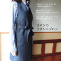 おしゃれ着にもなるリネンのフリルエプロンです。胸元のフリル使いやリボンが、大人の女性をさらに美しく、エレガントに魅せてくれます。