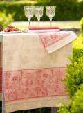 ジャガード織りのリネンテーブルランナーはドイツJu-Lein社デザイナーによるオリジナルデザイン。華やかな色使いで楽しい空間づくりを。