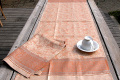 ジャガード織りのリネンテーブルランナーはドイツJu-Lein社デザイナーによるオリジナルデザイン。落ち着いたペイズリー柄は、和テイストのコーディネイトにもいけそう。ボーダーがポイント!