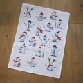 プレゼントを持ったスノーマン、トナカイの角を付けたスノーマン、糸取りをするスノーマン、ユニークでキュートなスノーマンをプリントしたかわいいキッチンクロス