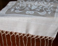 リネンの快適性と美しい織り柄が特徴。ショールやテ―ブルランナーにお使いください。